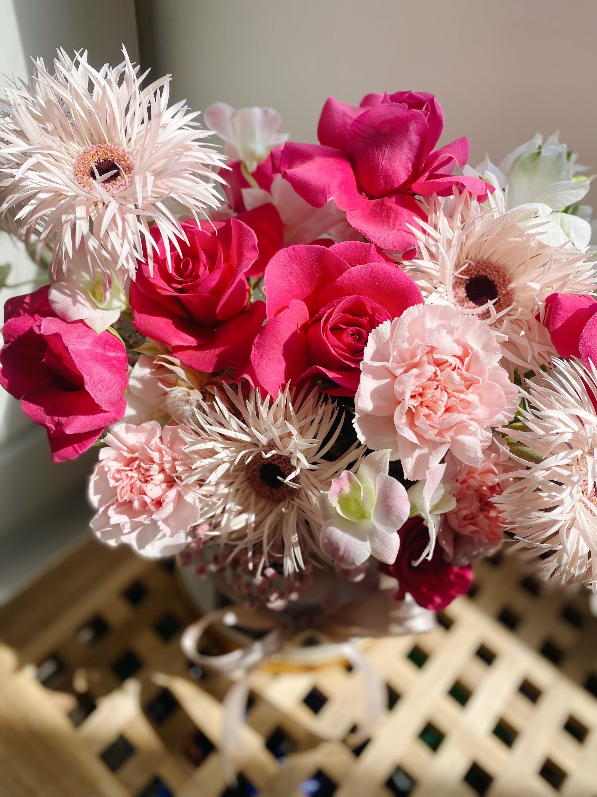 Due to seasonal changes, freshness, and potential shipping shortages, the selection of fresh flowers may vary. The flowers you receive may differ from the reference image; however, we will substitute with flowers of similar value and tone, ensuring the overall look and feel of the arrangement is preserved.