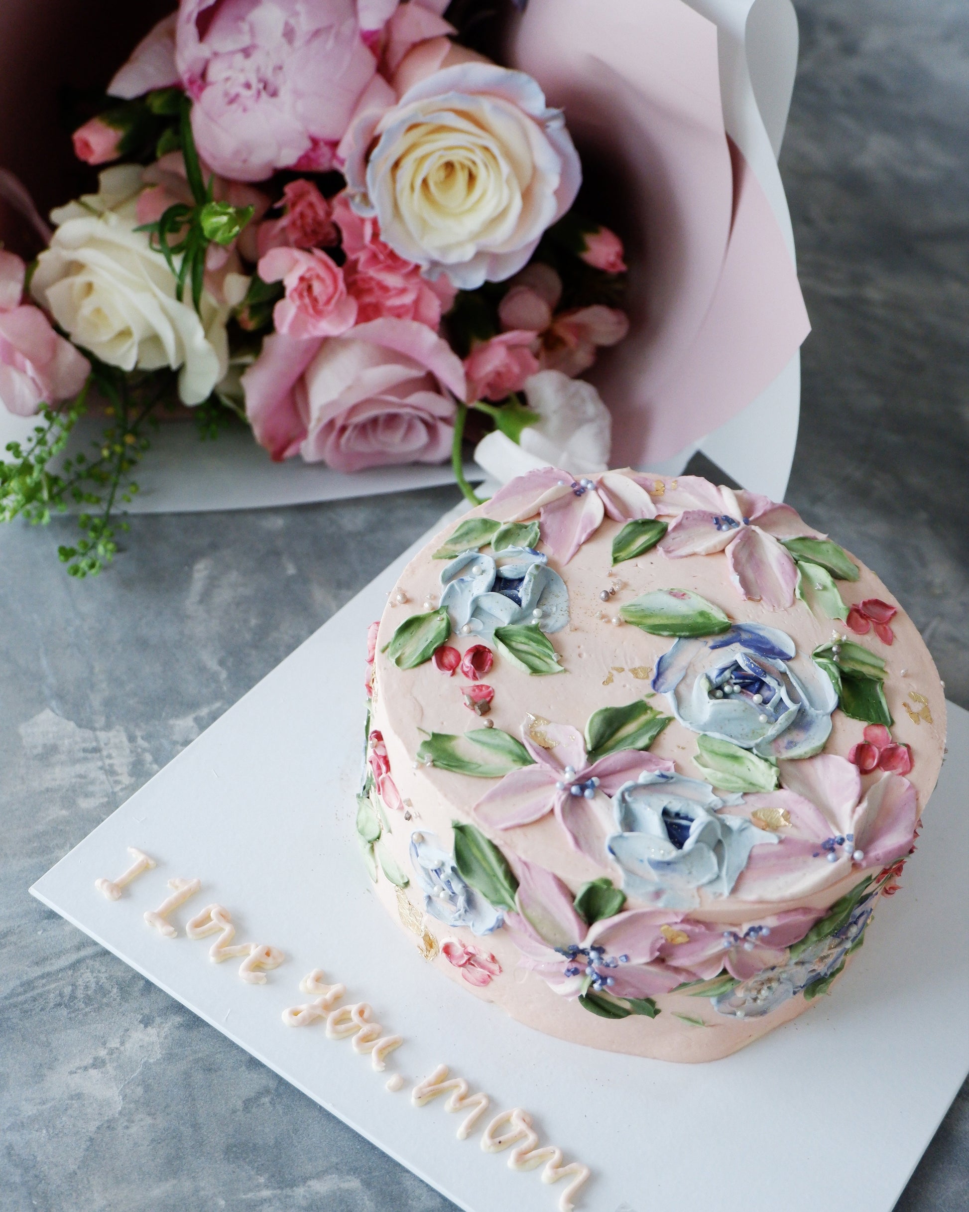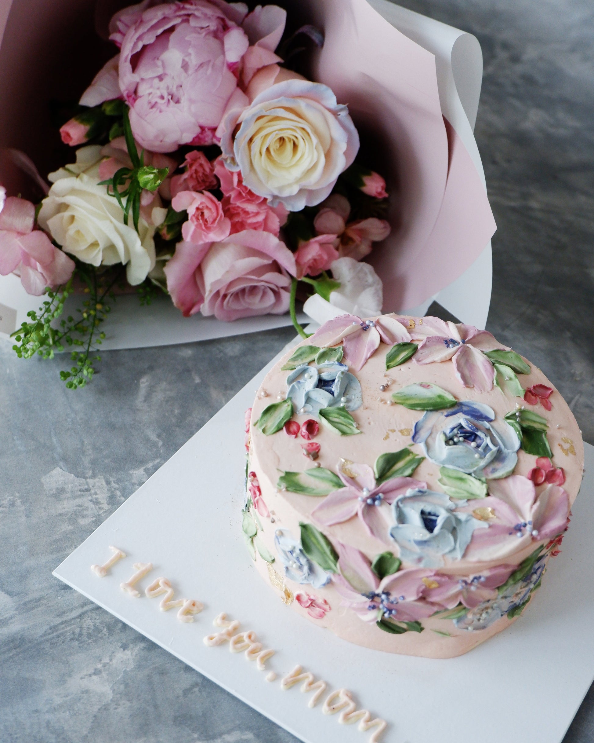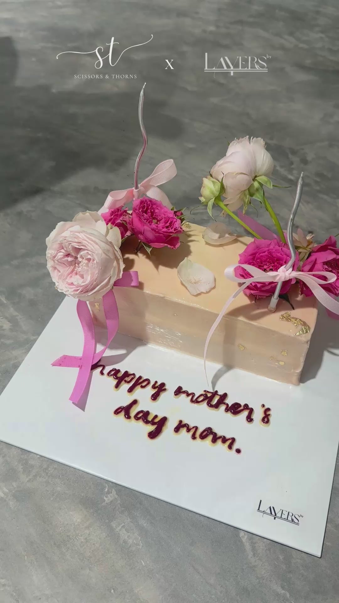 Celebrate Mother’s Day with the perfect pairing: 5” handcrafted Layers.By round cake, beautifully bundled with fresh blooms by Scissors & Thorns.