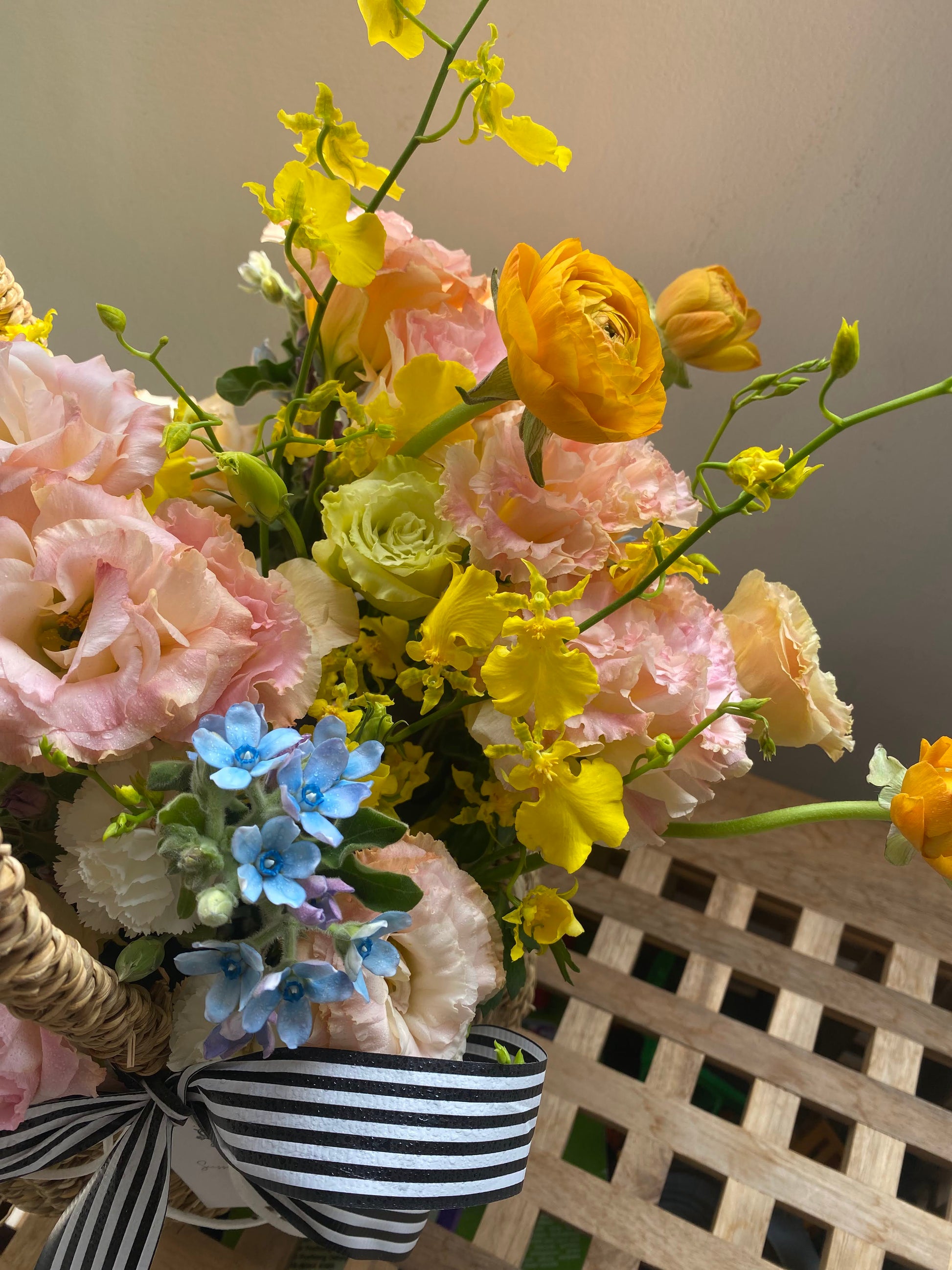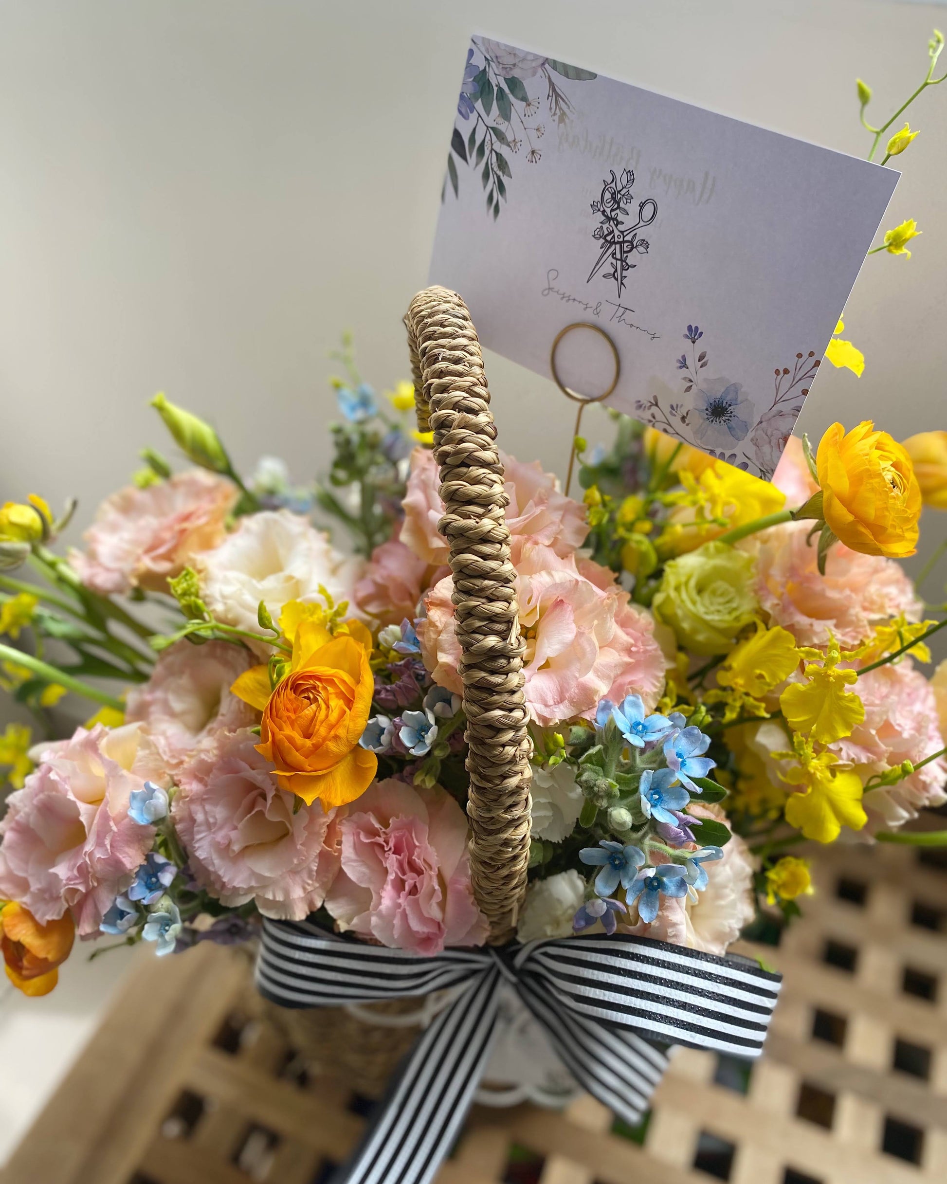 Due to seasonal changes, freshness, and potential shipping shortages, the selection of fresh flowers may vary. The flowers you receive may differ from the reference image; however, we will substitute with flowers of similar value and tone, ensuring the overall look and feel of the arrangement is preserved.