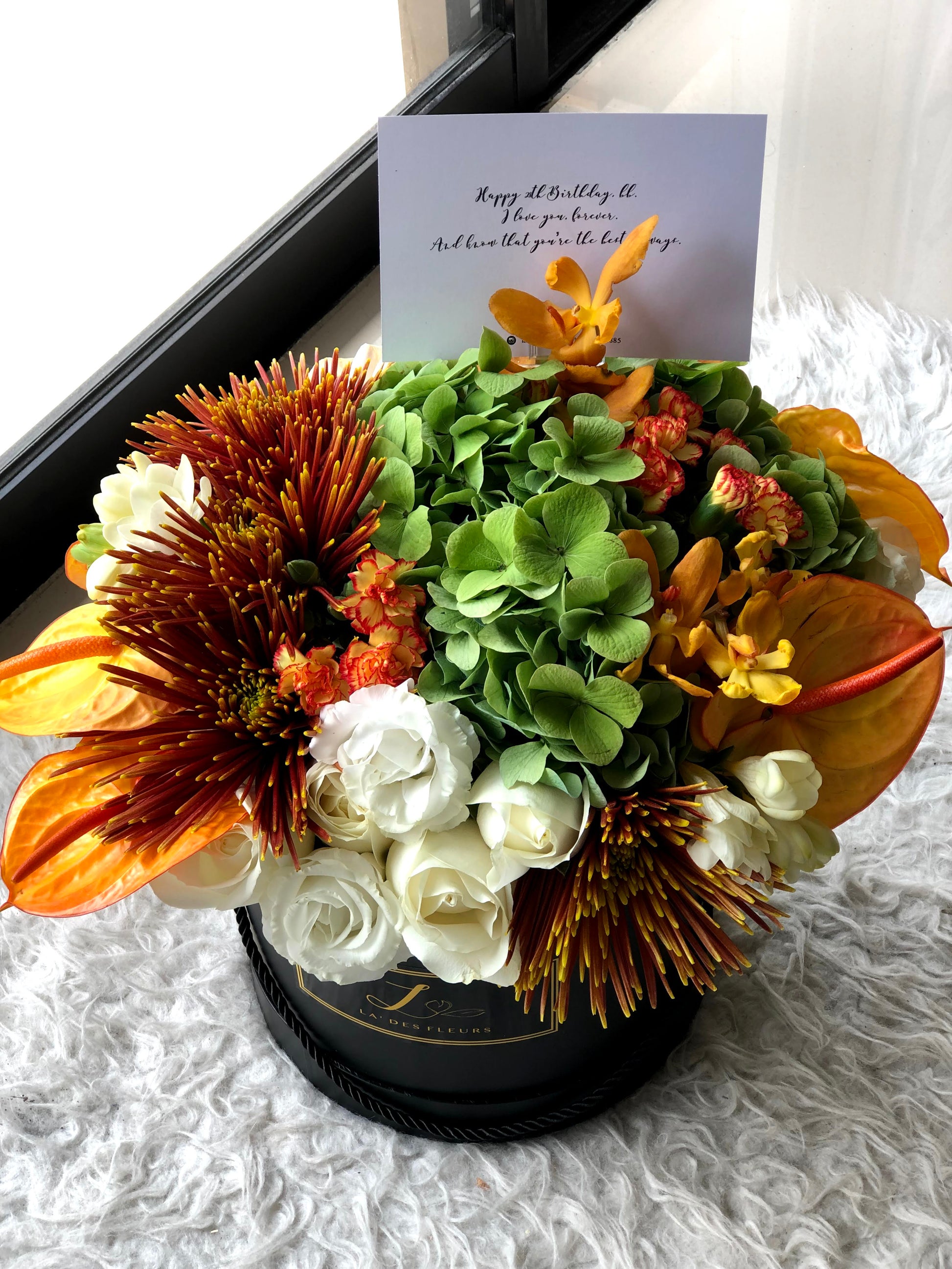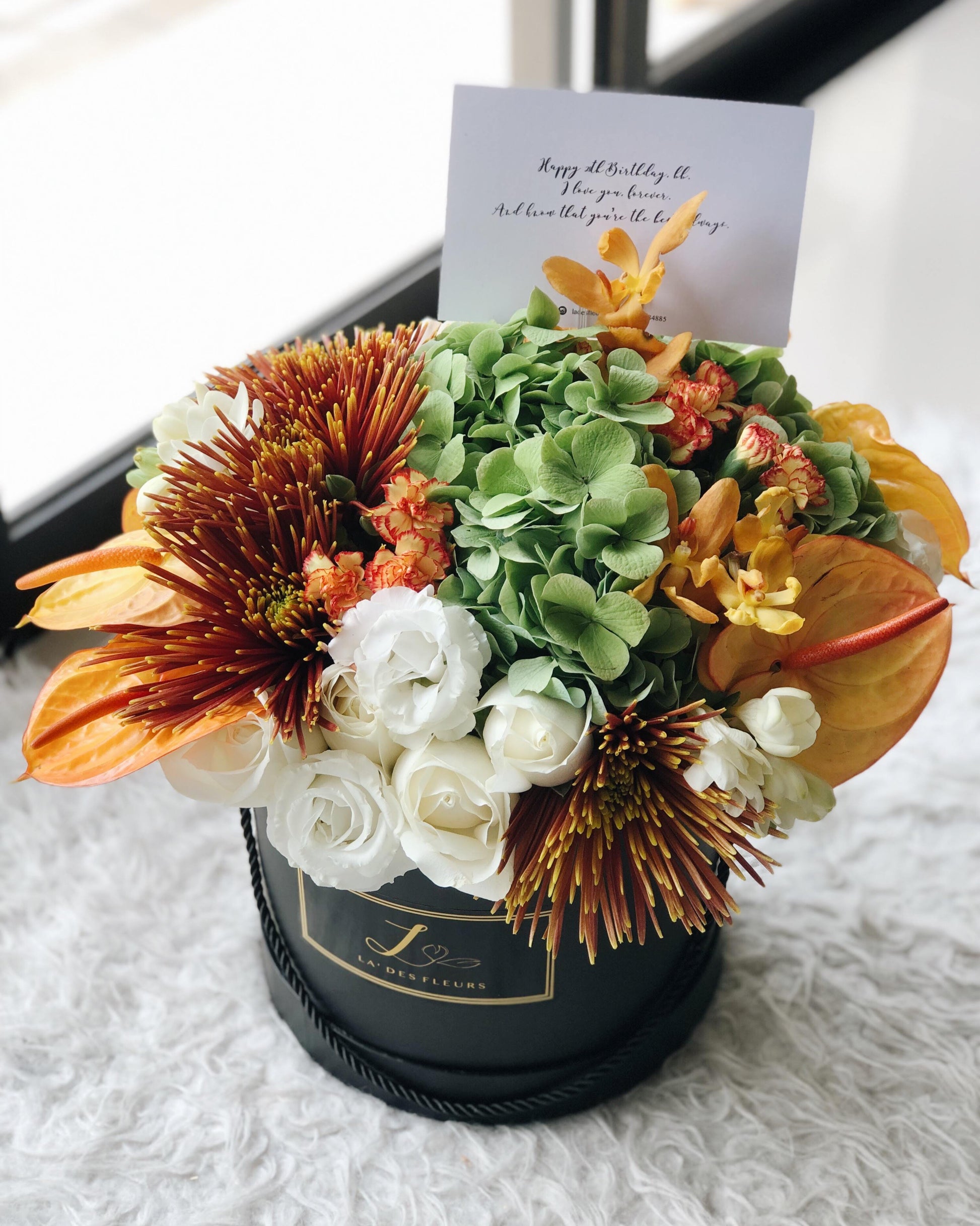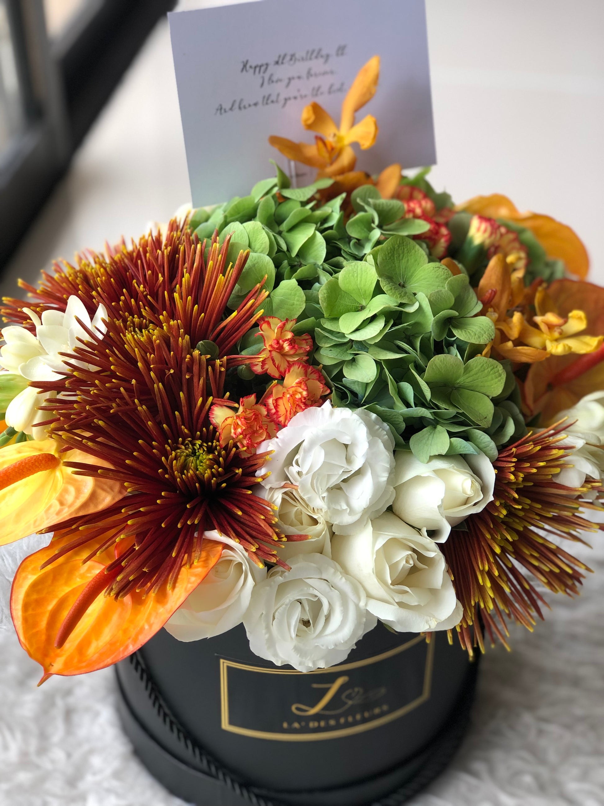 Due to seasonal changes, freshness, and potential shipping shortages, the selection of fresh flowers may vary. The flowers you receive may differ from the reference image; however, we will substitute with flowers of similar value and tone, ensuring the overall look and feel of the arrangement is preserved.
