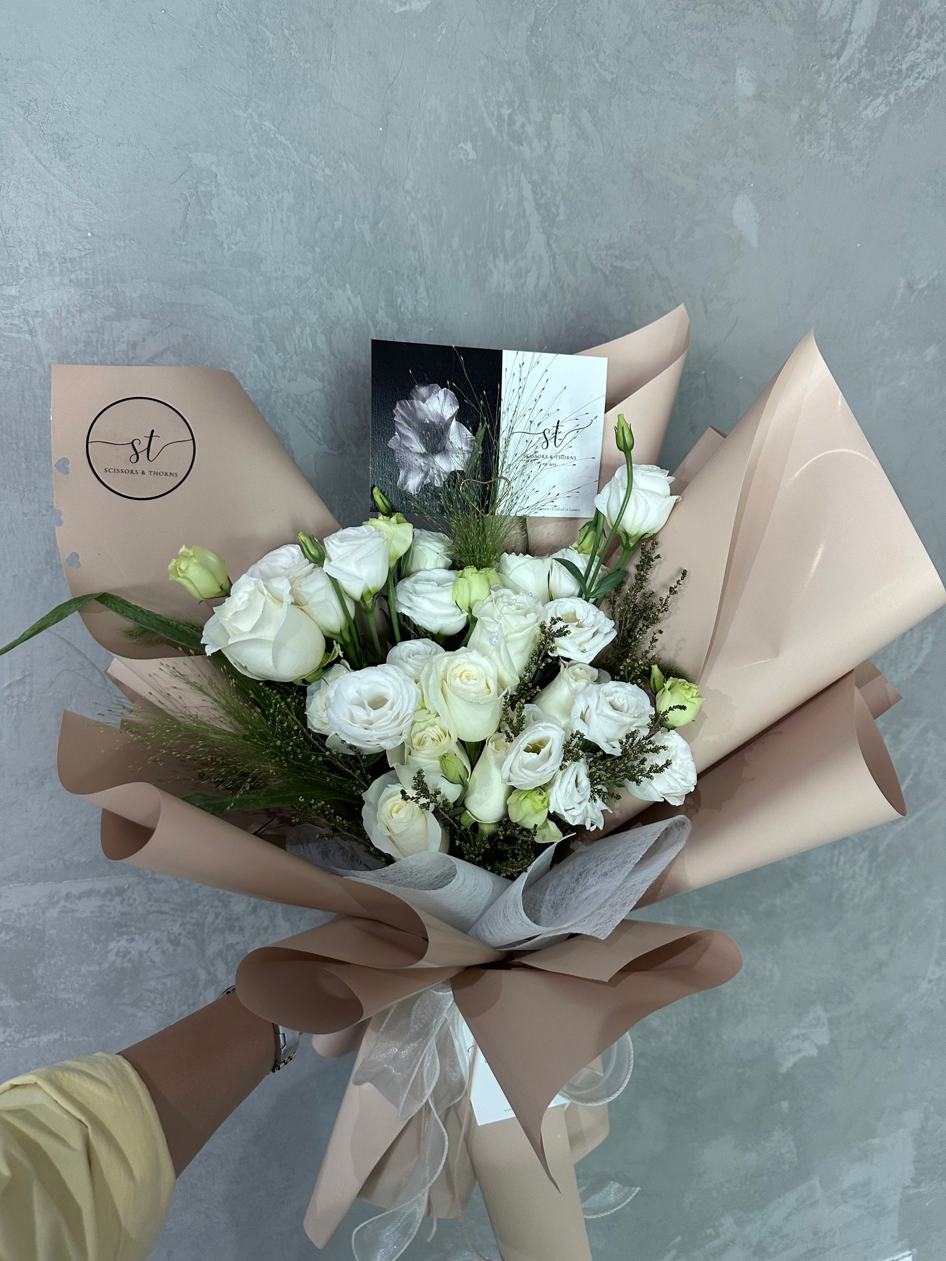 Due to seasonal changes, freshness, and potential shipping shortages, the selection of fresh flowers may vary. The flowers you receive may differ from the reference image; however, we will substitute with flowers of similar value and tone, ensuring the overall look and feel of the arrangement is preserved.